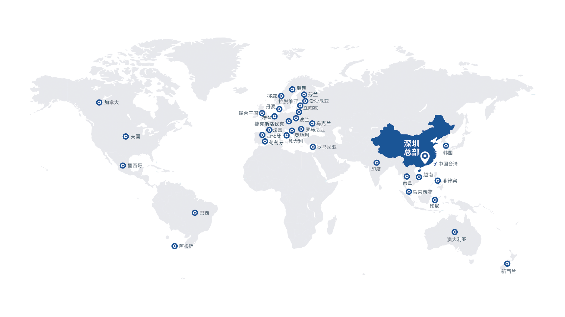 立足于國(guó)內(nèi)深圳、張家港、常州、天津、長(zhǎng)沙、蘇州、濟(jì)南生產(chǎn)基地與備品備件庫,國(guó)內(nèi)外轄180+辦事處,在100多個(gè)國(guó)家和地區(qū)設(shè)立銷售服務(wù)機(jī)構(gòu),為全球用戶提供高品質(zhì)的產(chǎn)品與優(yōu)質(zhì)高效的服務(wù)。